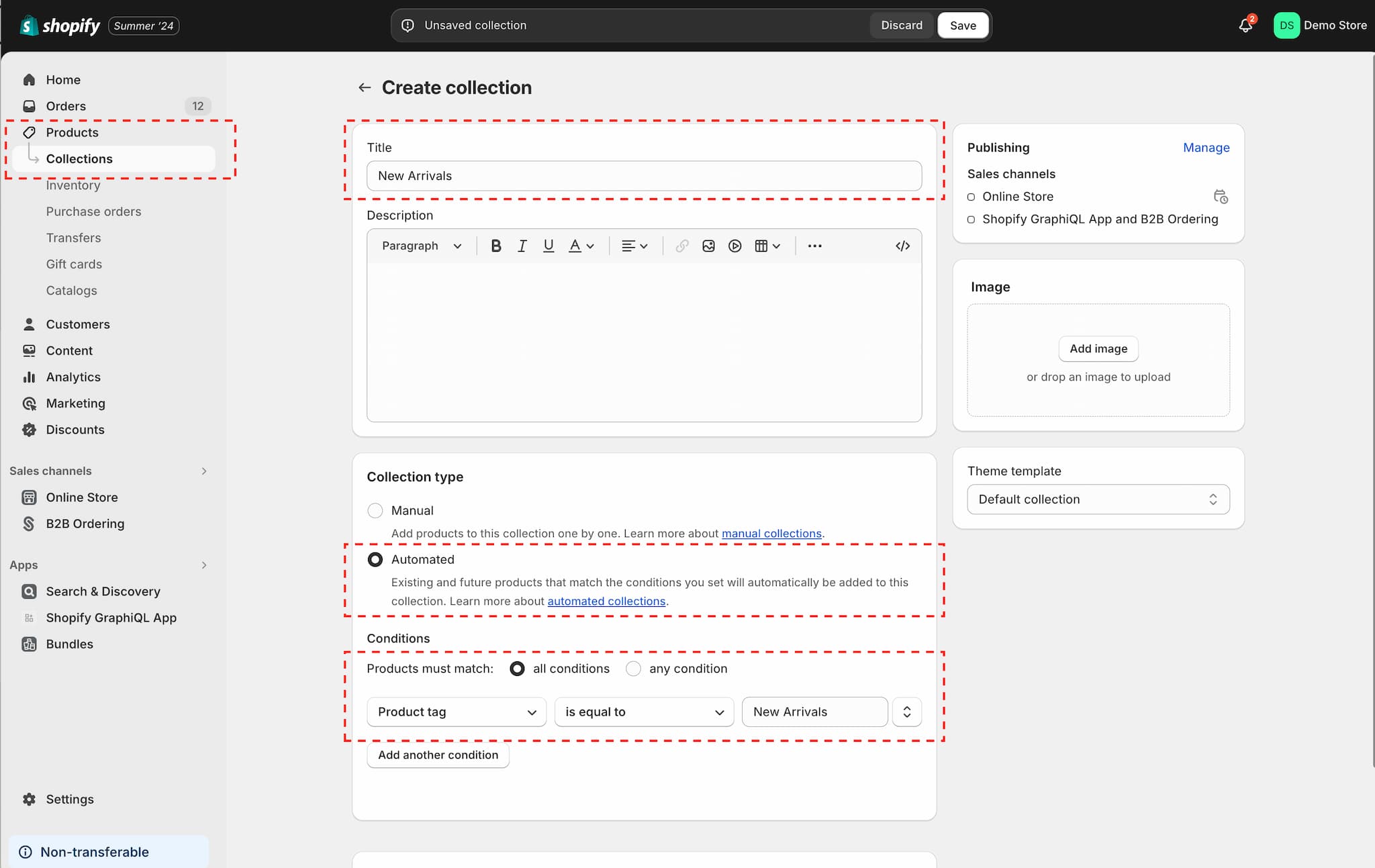 - Give the collection a title - we’ll call it ‘New Arrivals’